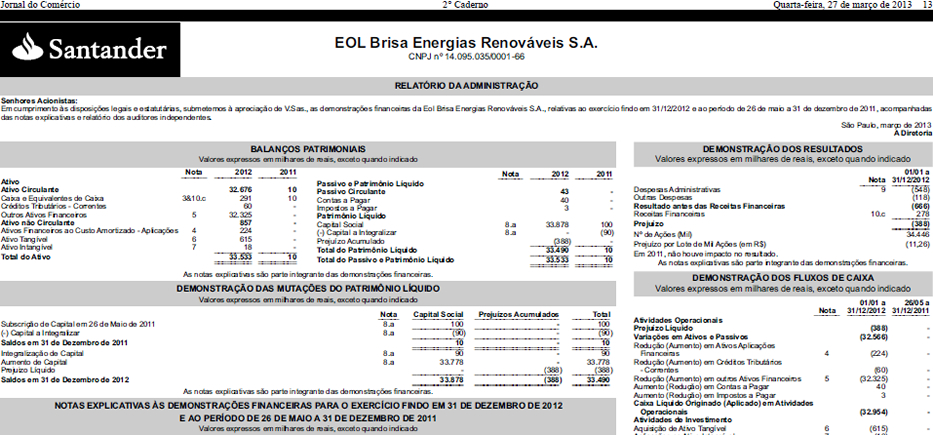 BALANÇO 2012